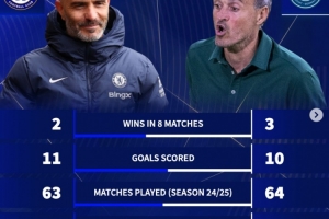 两队自2004年以来共计在各项赛事交锋8次,切尔西打进11球、取得2胜,巴黎打进10球、取得3胜,其余3场比赛握手言和。